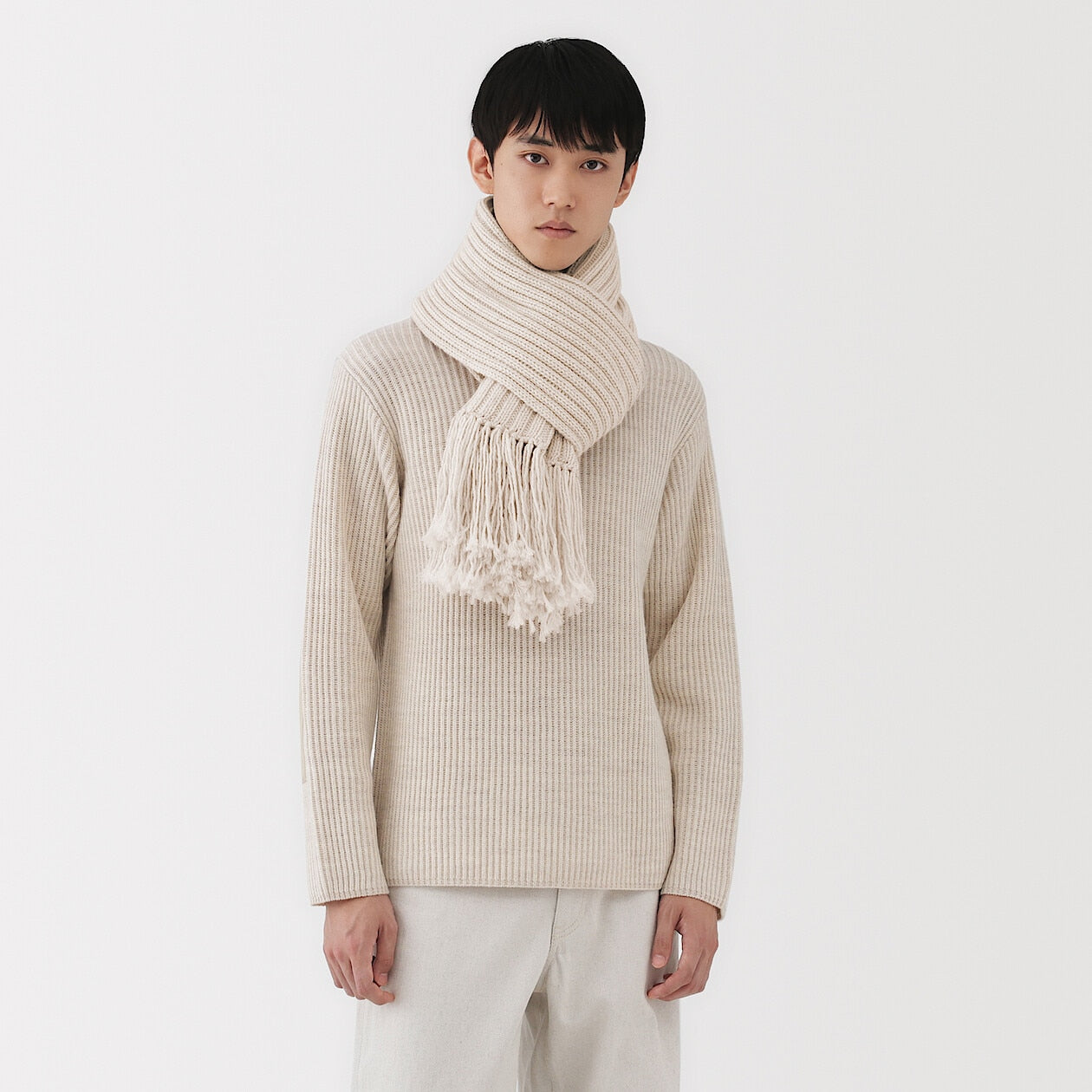 Reflecting a more sustainable approach to everyday clothing, the MUJI Labo line uses organic cotton and recycled cotton blends. MUJI's recycled cotton blend range gives new life to materials that would otherwise go to waste by blending cotton with fabric scraps from T-shirt and shirt production. This process reduces fabric waste while maintaining the natural softness and comfort of cotton.