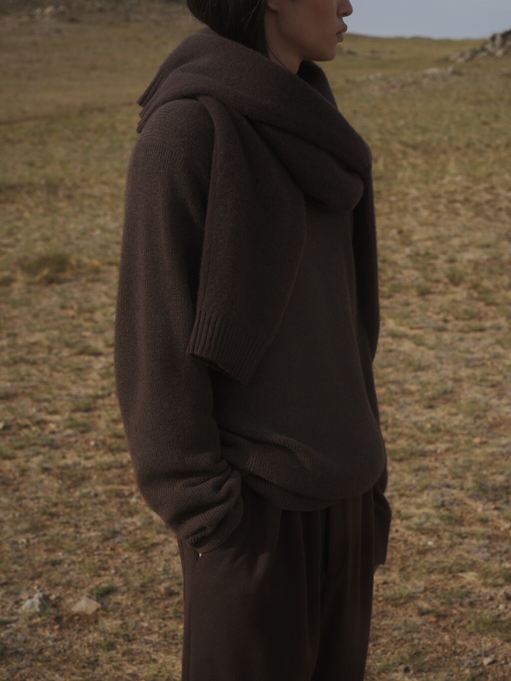 Sourced from the eastern Mongolian Plateau, this unbleached cashmere is cherished for its natural softness, gentle fluffiness, and quiet warmth. Finished without harsh processing, the fibres retain their pure, organic character, offering a comforting touch against the winter cold. Made with care for both the people and the landscapes of the eastern Mongolian Plateau.