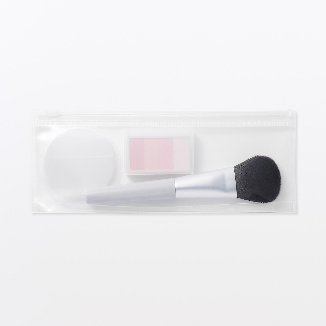 A compact transparent zip case, excellent for organising small items.