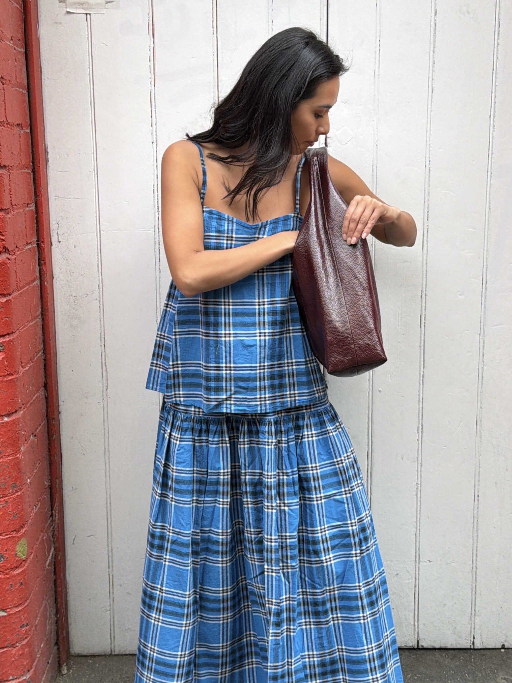 Stand out in Madras Check. Rooted in tradition, the collection is defined by it's vibrant colours and free-flowing silhouettes seen all around Tamil Nadu, India. Printed on organic cotton and born from a gentle manufacturing process using traditional looms.